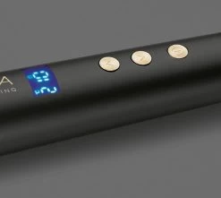De staven van de krultang combineren de geleidbaarheid van goud met de soepele controle van keramiek en minerale oliën als macadamia, agranolie en keratine. Dit zorgt ervoor dat het haar langdurig glad en glanzend wordt en dat kroezen en statische elektriciteit worden geëlimineerd.